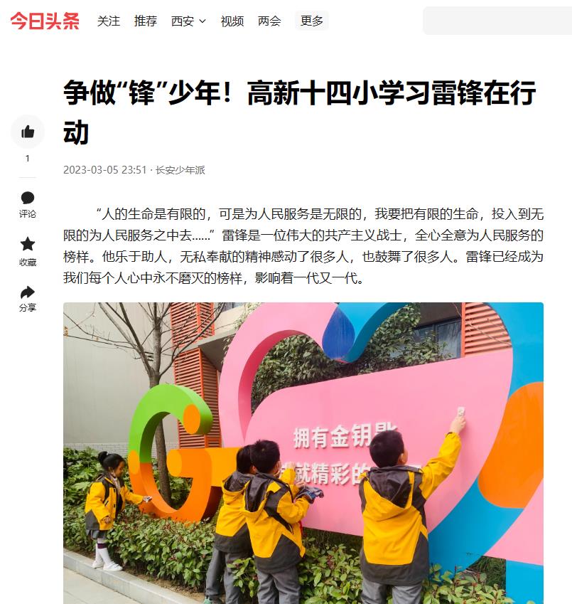 3月1日,同学们在学校的组织下走进社区开展学雷锋志愿活动。活动前,高新十四小执行校长孙波向同学们发起倡议,希望大家从小爱护公物,爱护花草树木,乐于帮助他人,向雷锋同志学习。